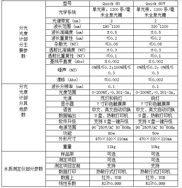 Quick 60系列比其它水质测定仪具有更为准确的测量结果;透射比准确度≤0.3%T;测试波长误差≤0.5nm,测 定数据更准确。