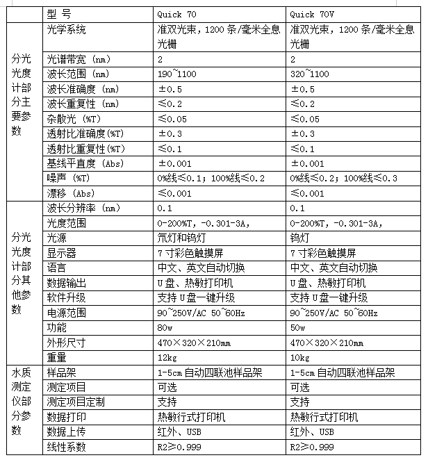 Quick 70系列比其它水质测定仪具有更为准确的测量结果;透射比准确度≤0.3%T; 测试波长误差≤0.5nm,测定数据更准确。