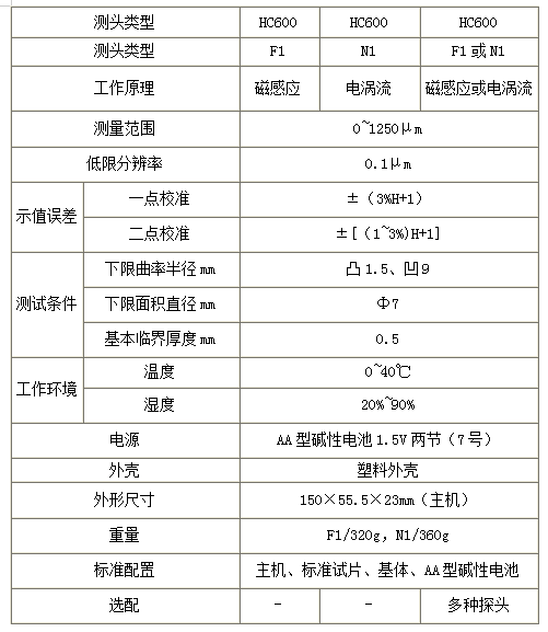 采用磁性和电涡流两种测量方法,可无损地检测磁性金属基体上非磁性覆盖层的厚度(如钢铁合金和硬磁性钢上的铝、铬、铜、锌、锡、橡胶、油漆等),以及非磁性金属基体上非导电的绝缘覆盖层的厚度(如铝、铜、锌、锡上的橡胶、塑料、油漆、氧化膜等)。