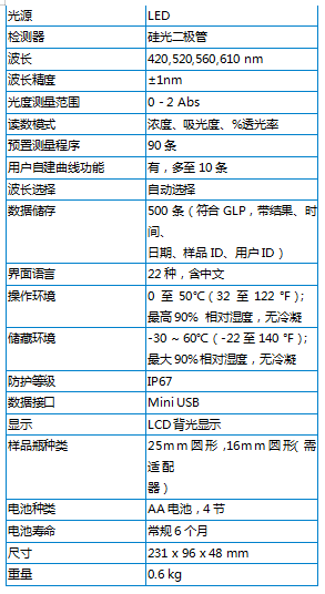 DR900 便携式多参数比色计,特别为现场测试设计,测量过程简单、快速。DR900具有自动波长选择和自动波长校正功能,储存有90条标准曲线,可测量多个参数,大屏幕直接显示测量结果。使用粉枕、安瓿瓶试剂、预装管(TNT管)等不同包装的预制试剂,可大大缩短样品分析时间。其特点为: