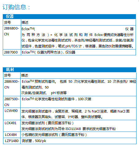 HACH EcloxTM 便携式水质毒性分析仪可测试参数