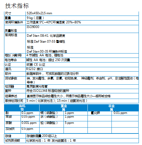 ●化学发光法预制试剂可在室温下保存,发光细菌法预制试剂为符合ISO11348 的费氏弧菌冻干粉