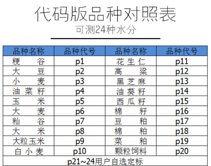 测量范围:粮食及其他非金属颗粒状样品,如稻谷、小麦、玉米、大豆、油菜籽等