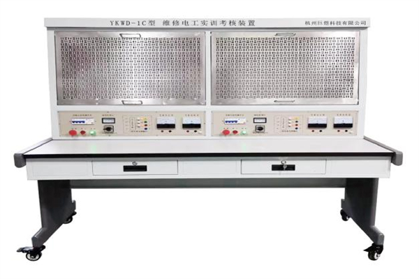 设备概述: YKWD-1C维修电工实训考核装置,主要釆用双 工位结构,配2套网孔版,2套操作电源,实训桌以 50mmX50mm,2mm厚成型方钢作为设备主要框架 材料;实训屏、地盘采用焊接连接,表...