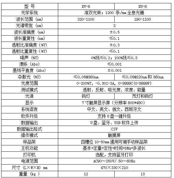 附属功能:氘灯、钨灯点灯累计时间、氘灯、钨灯独立关闭和开启、紫外光和可见光切换波长点选择、操作语言选择、波长自动校准、蓝牙功能等。