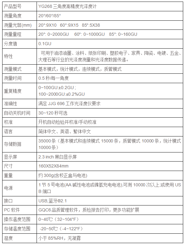 YG268三角度高精度光泽度仪,参照国际标准1502813和中国国家标准GB/T9754设计制造的光泽度测量仪器,具有自动检查校正标准板的功能,配有高端品质管理软件,满足JJG696工作光泽度计要求。