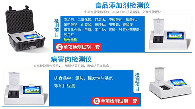 可快速检测各类食品中的甲醛、二氧化硫、亚硝酸盐、吊白块的含量,仪器预留其他项目检测程序和端口,根据日后需求可方便的自主增加检测项目。