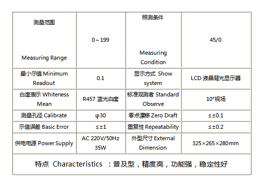 4,采用经修正的滤色系统,仪器的总体光谱特性完全符合CIE标准观察员响应曲线,能准确的获得ISO白度。